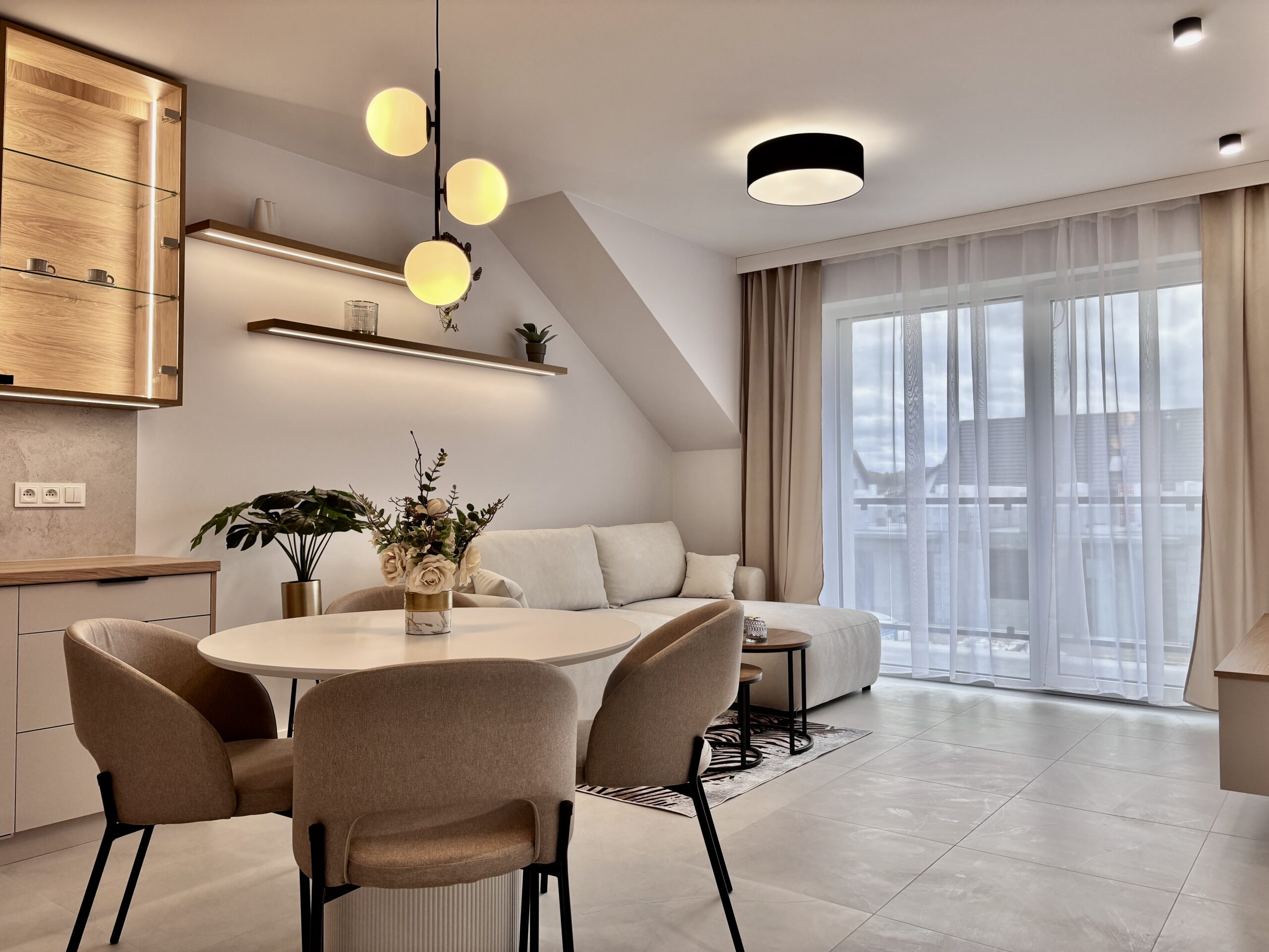 • Przestronny salon z dużym oknem i dużym balkonem